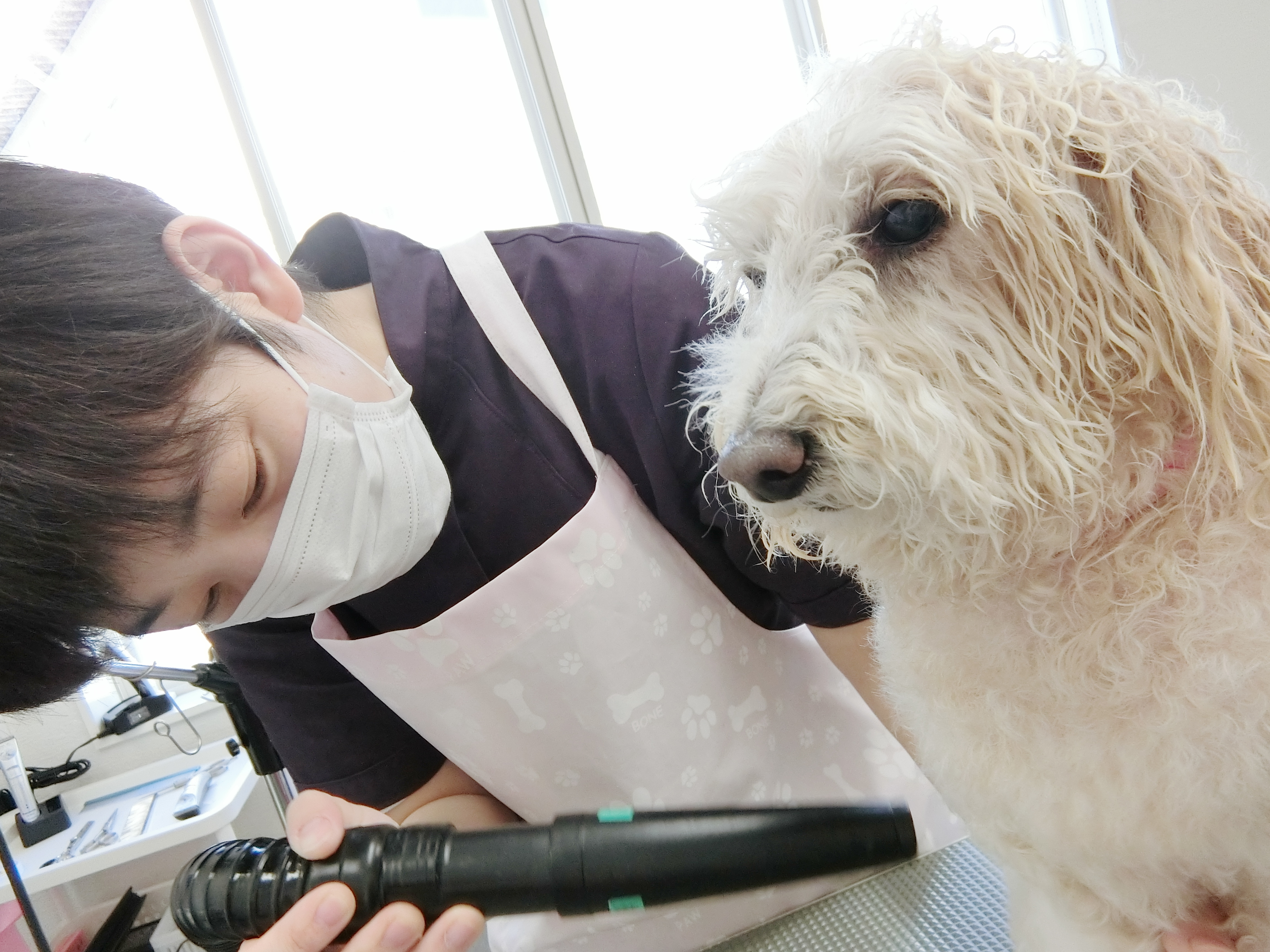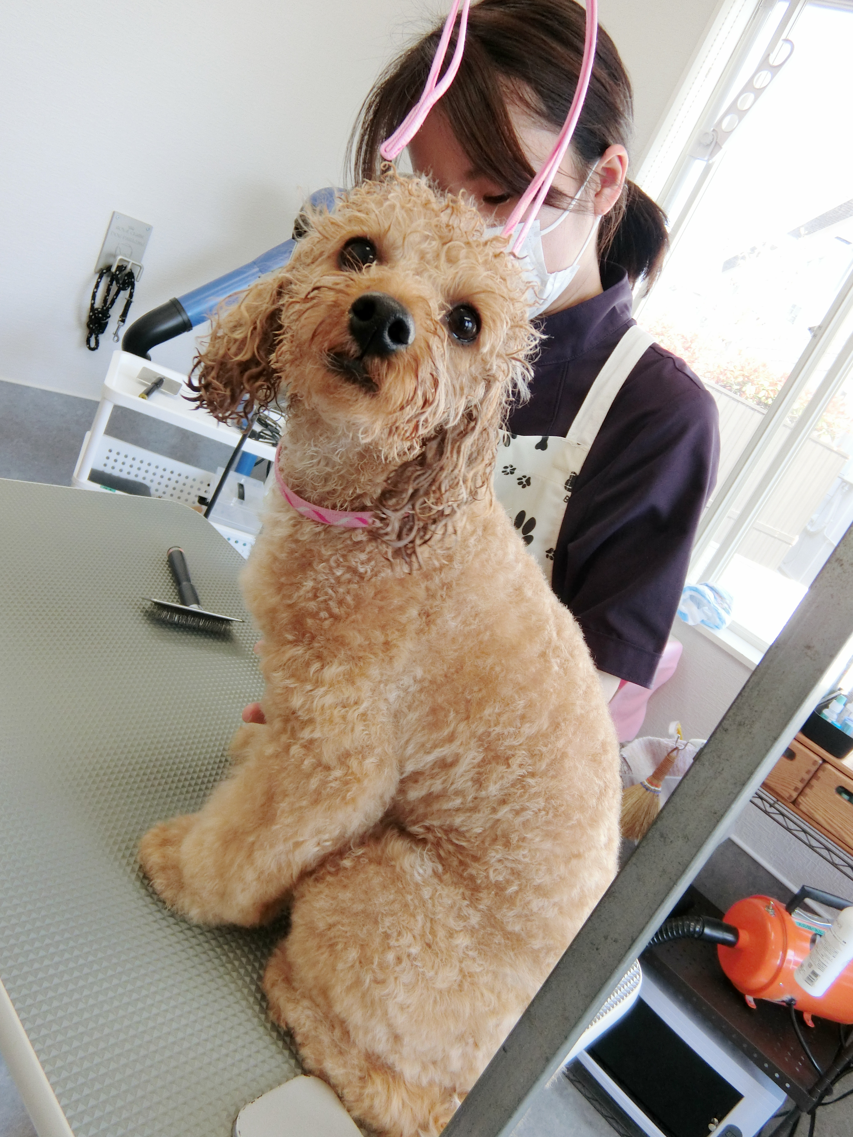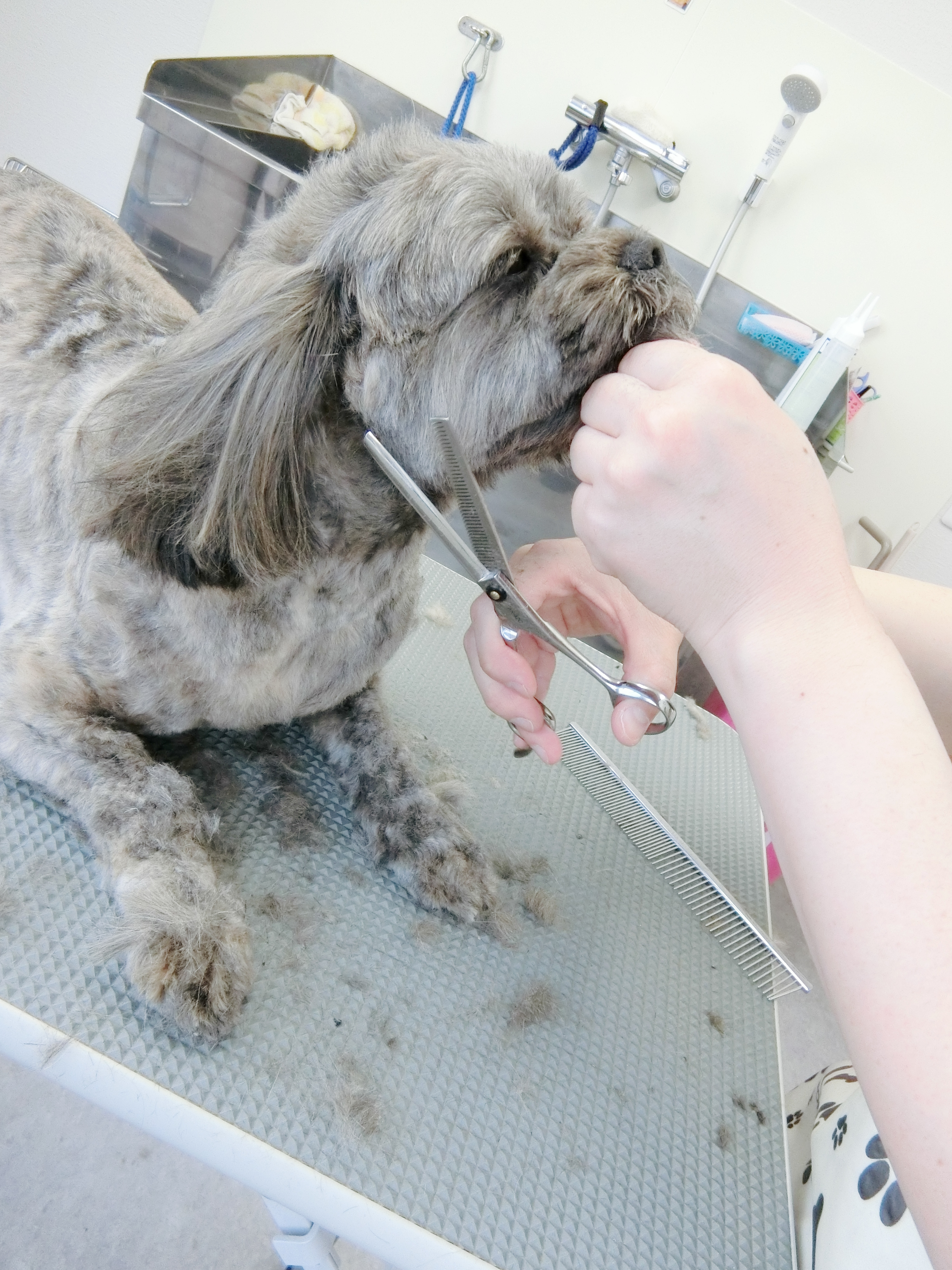 当院が初めてで・・・・ちょっとトリミングを満喫する所では無さそうな、ブンちゃん![]()